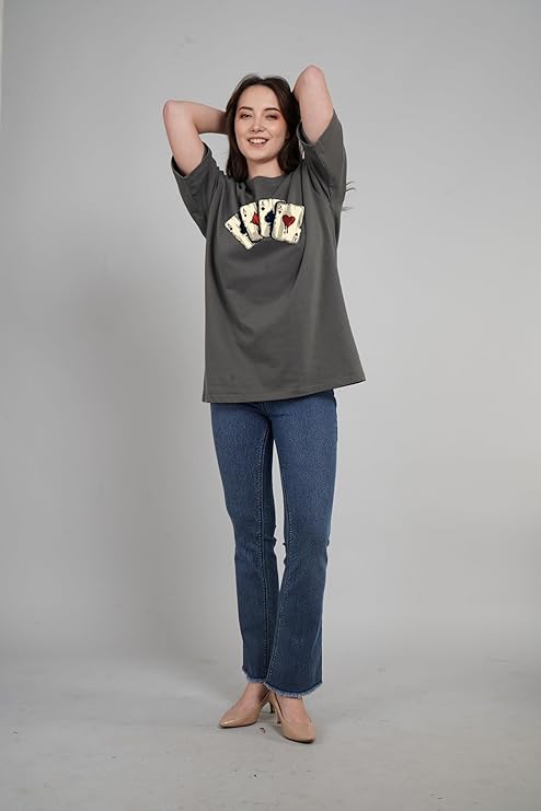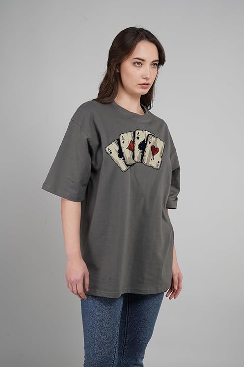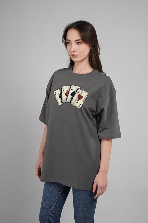 FieryFrost Women’s Pure Cotton Half Sleeve Card_S Printed Oversize Tshirt
